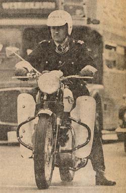 He eased back into racing on his 998cc Vincent at the end of 1966 but a dropped valve convinced him that the bike was better for everyday use. So he used it to commute to work, riding a standard police issue Triumph Saint on patrol.