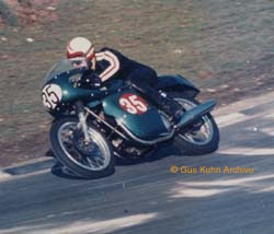 In a 1969 interview with David Dixon for Motor Cycle he said “My early racing years, from 1961 to 1963, mainly on a Gold Star BSA, brought moderate success until I was off work for six months following a shunt with a 350cc Manx Norton at Aberdare Park. Of course, that made a big but wrong impression at work, so I packed up for three years and let the dust settle!”