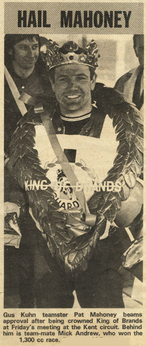 This Pat Mahoney's memory of the 1970 King of Brands race, in his own words, written in the 1980s.